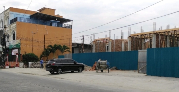 Bangunan itu tepat disamping Gang atau Jalan Umar. Pasalnya, proses pembangunan masih tampak berlanjut tanpa terlihatnya plank Izin Mendirikan Bangunan (IMB) yang saat ini sudah berganti nama menjadi PBG (Persetujuan Bangunan Gedung).