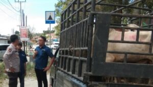 Cegah Penyebaran PMK, Polsek Lumban Julu Lakukan Pemeriksaan di Posko Check Point Aek Natolu Sabtu, 9 Juli 2022