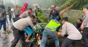 TNI-Polri Evakuasi Pohon Tumbang di Berastagi