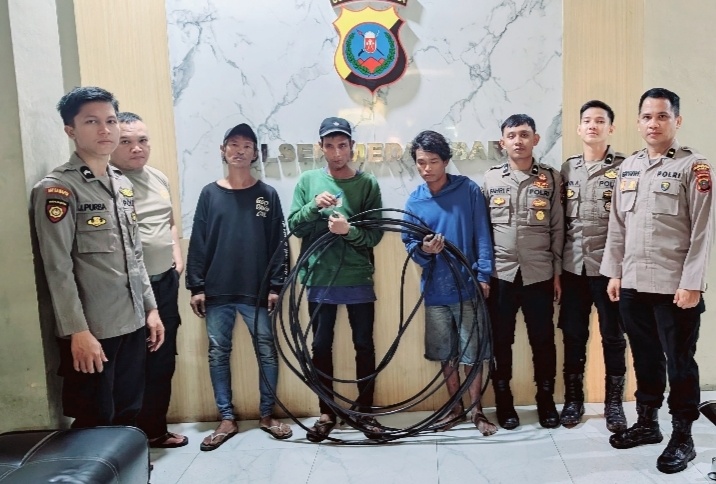Tim Patroli Presisi Satsamapta Polrestabes Medan berhasil mengamankan tiga pelaku pencurian kabel Telkom di Jalan Kapten Maulana Lubis, tepatnya di depan Wisma Benteng, pada Sabtu (14/12/2024) sekitar pukul 03.16 WIB.