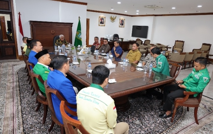 Sebanyak lima organisasi kepemudaan kunjungi kantor Gubernur Sumatera Utara di Jalan Pangeran Diponegoro, Medan, Jum’at (29/8/2025) sekitar pukul 14.30 Wib.