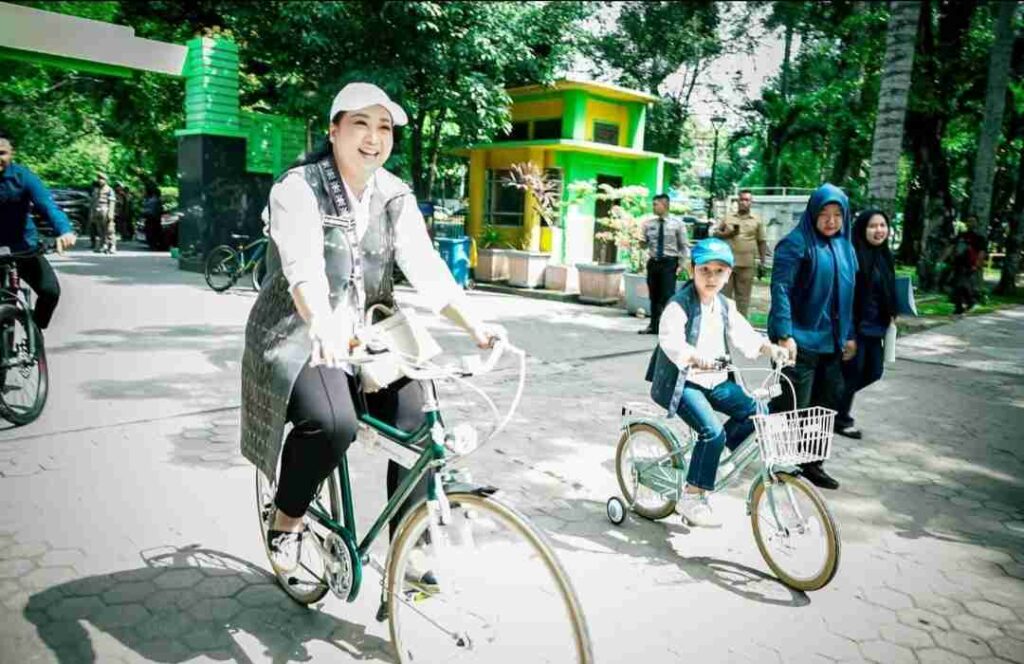 Ketua TP PKK Kota Medan Airin Rico Tri Putra Bayu Waas menekankan pentingnya kegiatan mendongeng dalam meningkatkan kemampuan literasi dan numerasi anak usia dini pada peringatan Hari Dongeng Sedunia yang digelar di Taman Ahmad Yani, Kota Medan, Selasa (28/4/2026).