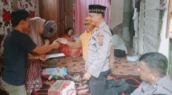 Kapolres Labusel AKBP Arfin Fachreza diwakili Kasat Binmas, AKP Henry Surbakti bersama Wakapolsek Torgamba Iptu Anwar Rasyid dan perwakilan dari Puskesmas Asam Jawa menyerahkan langsung bantuan untuk biaya perobatan serta paket sembako.