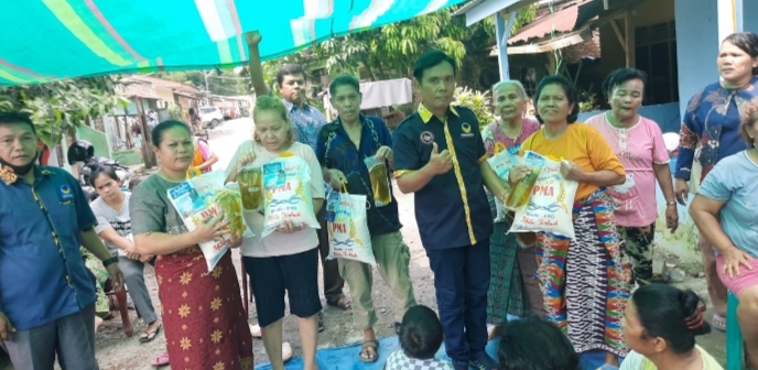 Pemberian sembako ini terdiri paket beras 5 Kg, Minyak Goreng 1 Kg, dan juga tali asih kepada sebanyak 100 kepala keluarga.