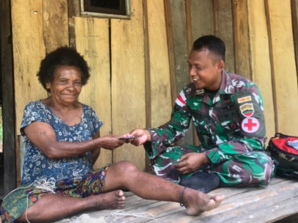 “Jauhnya rumah sakit dari pemukiman warga, membuat personel Satgas selalu berinisatif membantu masyarakat untuk memberikan pelayanan kesehatan keliling ke rumah-rumah warga secara rutin”, jelas Dansatgas