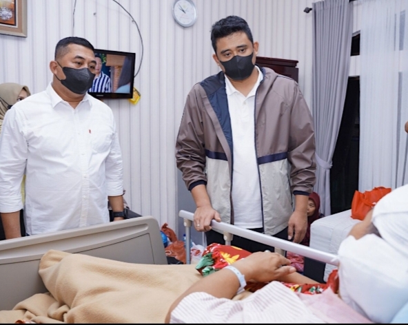 Setelah kemarin terjadi, Walikota Medan M.Bobby Afif Nasution SE MM, Dandim 0201/Medan Kolonel Inf Ferry Mujawwad SIP yang di dampingi Camat Medan Sunggal Oddi Batubara dan Danramil 0201-06/MS Kapten Inf Hari Sudilo hari ini melaksanakan anjangsana besuk ke rumah sakit Bina Kasih Medan, Rabu (20/4/2022).
