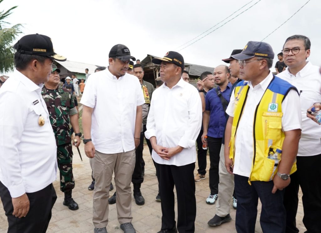 Menteri Koordinator Bidang Pembangunan Manusia dan Kebudayaan (Menko PMK) RI Muhadjir Effendy bersama Wali Kota Medan Bobby Nasution meninjau Kelurahan Belawan Bahari, Kecamatan Medan Belawan, Sabtu (17/2/2024). Peninjauan ini dilakukan dalam rangka melihat penataan kawasan sebagai upaya penanganan kemiskinan ekstrem di kawasan tersebut melalui pendekatan lingkungan.