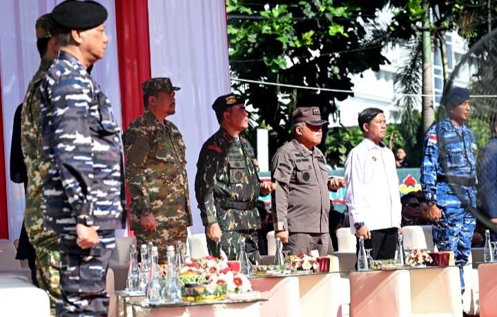 Gubernur Sumatera Utara (Gubsu) Bobby Nasution bersama Forum Koordinasi Pimpinan Daerah (Forkopimda) Sumut menghadiri Perayaan Hari Ulang Tahun (HUT) ke-80 Tentara Nasional Indonesia (TNI). Kegiatan yang mengusung tema ‘TNI Prima, TNI Rakyat, Indonesia Maju’, tersebut berlangsung di Lapangan Merdeka Medan, Minggu (5/10/2025).