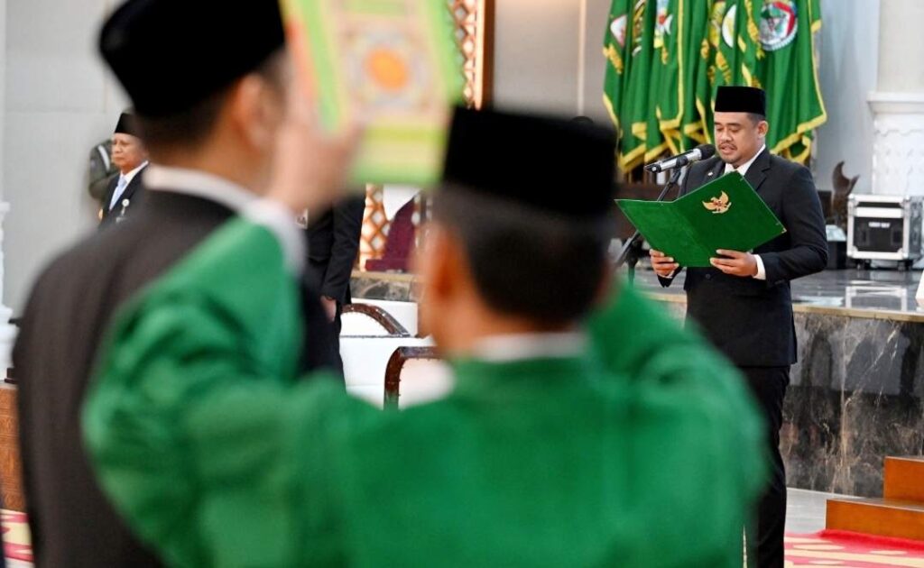 Gubernur Sumatera Utara (Gubsu) Muhammad Bobby Afif Nasution melantik dan mengambil sumpah jabatan 308 pejabat di lingkungan Pemerintah Provinsi (Pemprov) Sumut. Pada kesempatan tersebut, Bobby mengingatkan para pejabat yang baru dilantik agar tidak melakukan “kerja tambahan” yang dapat merugikan organisasi, keluarga, maupun diri sendiri.