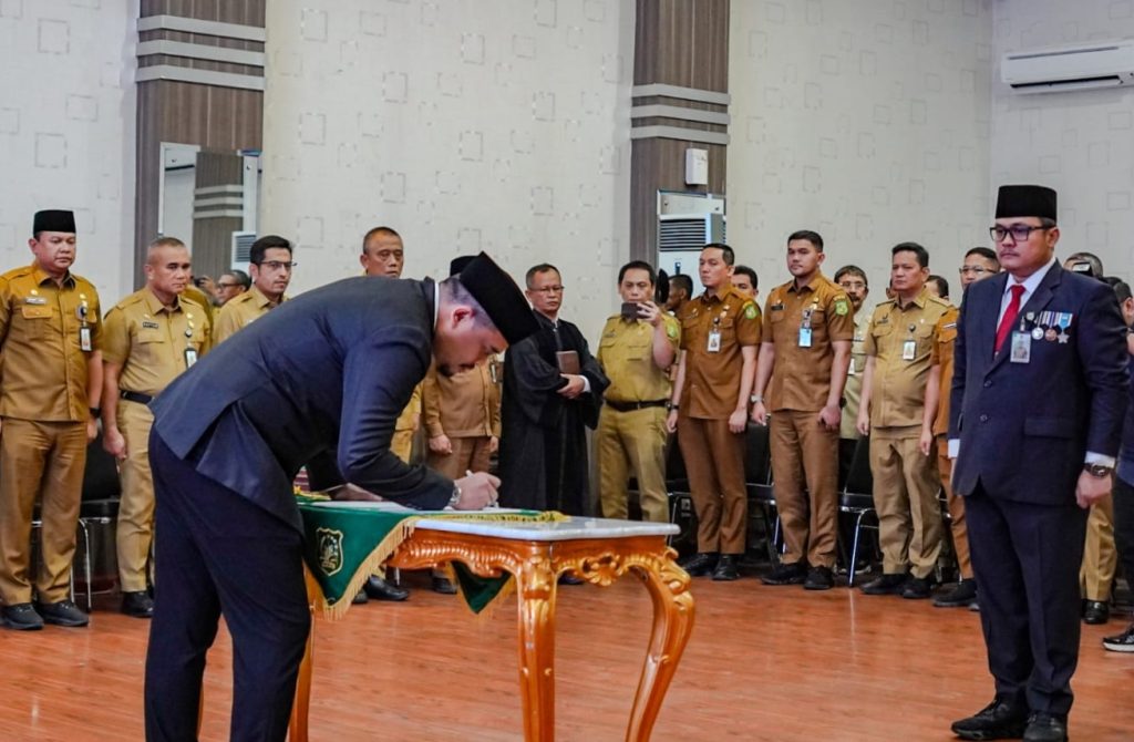 Tidak ada kubu-kubu atau faksi-faksi dalam bekerja menjadi pesan penting yang disampaikan Wali Kota Medan Bobby Nasution saat melantik dan mengambil sumpah janji jabatan Topan Obaja Putra Ginting yang saat ini menjabat Kepala Dinas Sumber Daya Air, Bina Marga dan Bina Konstruksi (SDABMBK) Kota Medan menjadi Penjabat (Pj) Sekda Kota Medan di Balai Kota Medan, Senin (13/5/2024).
