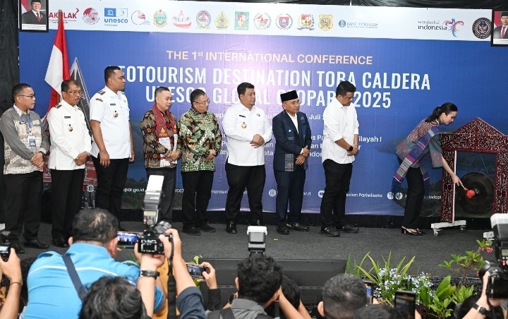 Menteri Pariwisata (Menpar) Republik Indonesia (RI) Widiyanti Putri Wardhana didampingi Gubernur Sumatera Utara (Sumut) Muhammad Bobby Afif Nasution, membuka secara resmi Konferensi Pertama Destinasi Geowisata Kaldera Toba Unesco Global Geopark 2025. Kegiatan tersebut berlangsung di Hotel Khas Parapat, Danau Toba, Kabupaten Simalungun, Selasa (8/7/2025).