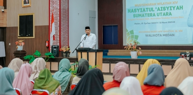 “Di waktu yang singkat ini, kami berupaya untuk mengejar seluruh tugas guna membangun Kota Medan jadi lebih baik lagi”, kata Bobby Nasution saat menghadiri Pembukaan Musyawarah Wilayah XIV Nasyiatul Aisyiyah Sumatera Utara di Gedung Balai Besar Pengembangan Penjaminan Mutu Pendidikan Vokasi (BBPPMPV), Jalan Setia Budi, Kecamatan Medan Helvetia, Sabtu (11/3/2023) sore.