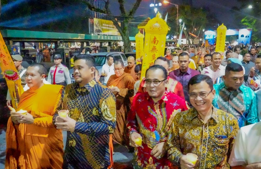 Diiringi oleh nyanyian spiritual umat Budha, Bobby Nasution didampingi antara lain oleh unsur Forkopimda, segenap pengurus Walubi dan Majelis Agama Budha, serta pimpinan perangkat daerah di lingkungan Pemko Medan, ikut berjalan kaki sambil membawa lilin dari Lapangan Benteng menuju Jalan Kapten Maulana Lubis dan Imam Bonjol.