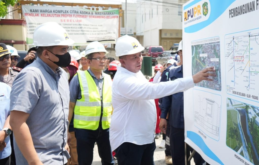 Selain untuk melihat progres pengerjaan, kehadiran Wali Kota Medan, Bobby Nasution didampingi Kepala Dinas SDABMBK Kota Medan, Topan Obaja Putra Ginting, dan Camat Medan Selayang, Muhammad Husnul Hafis ini, juga untuk bertemu dengan masyarakat sekitar yang sempat mengeluhkan dampak dari pembangunan proyek Floodway yang dikerjakan Balai Wilayah Sungai Sumatera (BWSS) II Medan.