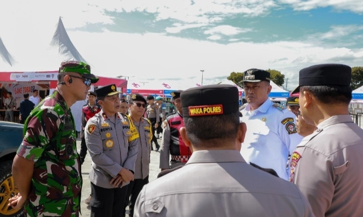 Mewakili Kapolda Sumatera Utara Irjen Pol Whisnu Hermawan Februanto, Wakapolda Sumut Brigjen Pol Rony Samtana meninjau langsung kesiapan Posko “Operasi Powerboat Toba 2025” di Venue Event Aquabike World Championship Toba 2025 kawasan Danau Toba, Rabu (13/8/2025).