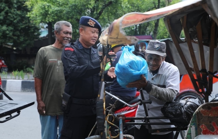 Puluhan paket sembako dibagikan secara langsung kepada anak-anak panti asuhan, penarik becak dayung, serta pemulung yang sehari-harinya berjuang mencari nafkah di jalanan.
