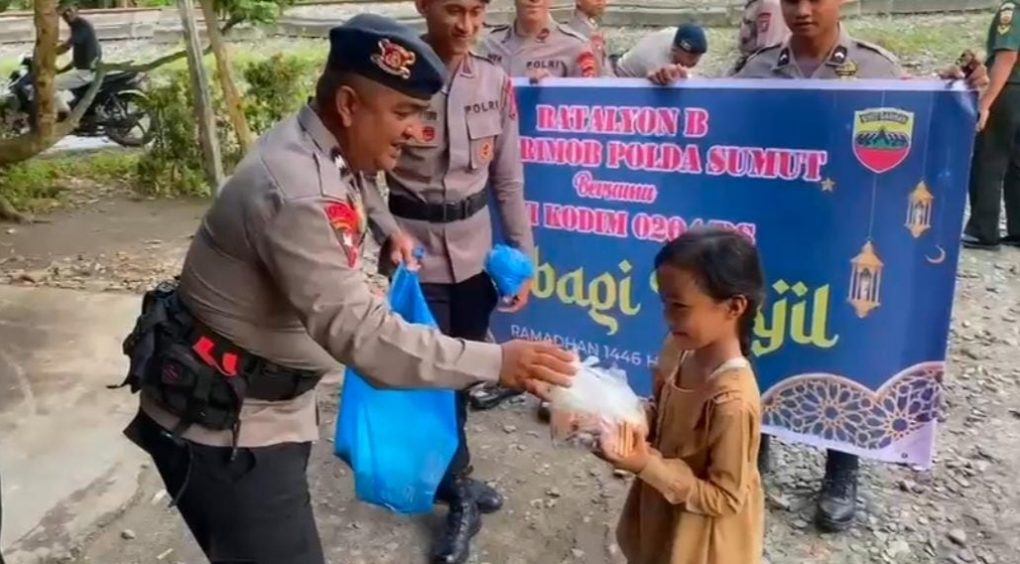 Memasuki bulan suci Ramadan, Batalyon B Pelopor Satuan Brimob Polda Sumatera Utara, bersama Kodim 0204/DS melaksanakan kegiatan berbagi takjil kepada masyarakat Kota Tebing Tinggi.