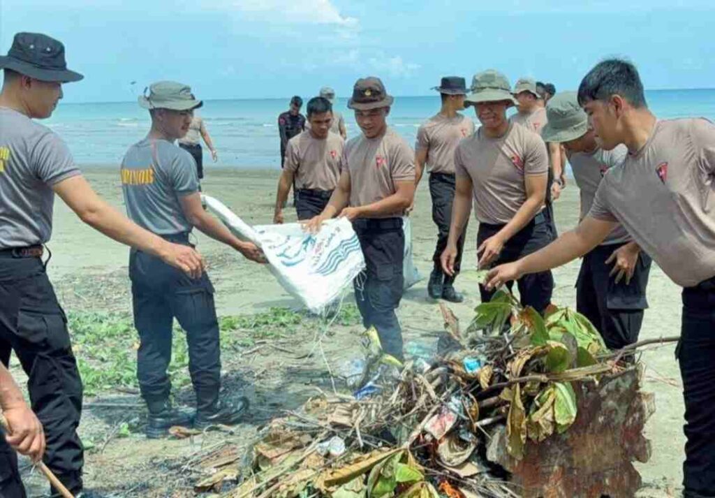 Dipimpin langsung oleh Komandan Kompi 4 Batalyon C AKP Sanro Situngkir, dan personel Brimob tampak menyisir area pantai dengan penuh semangat, membersihkan sampah-sampah yang terbawa arus laut maupun yang tertinggal di sepanjang pesisir.