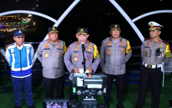 Kapolri Jenderal Listyo Sigit Prabowo kembali melakukan pengecekan langsung terkait dengan situasi arus balik Lebaran 2022 serta penerapan rekayasa lalu lintas skema one way, di Tol Cikampek Utama (Cikatama) KM 70, Sabtu (7/5/2022) malam.
