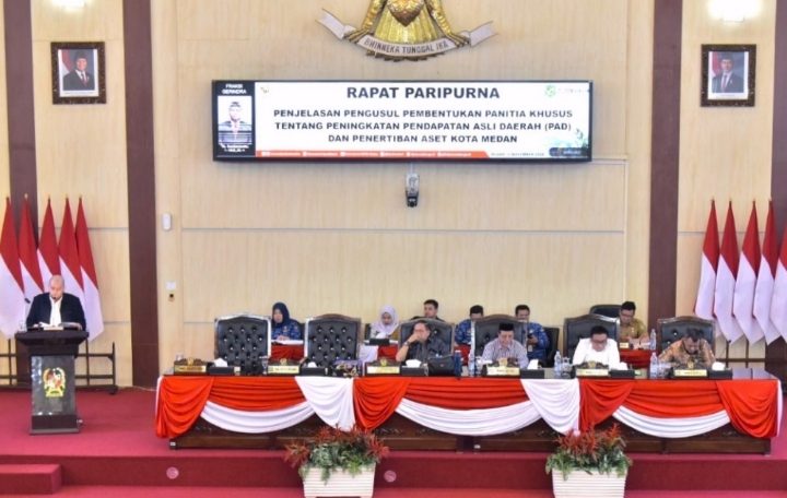 DPRD Kota Medan menggelar Rapat Paripurna dalam rangka Penjelasan Pengusul Pembentukan Panitia Khusus tentang Peningkatan Pendapatan Asli Daerah (PAD) dan Penertiban Aset Kota Medan, Senin (10/11/2025).