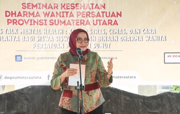 Hal itu disampaikan Ketua Dharma Wanita Persatuan Provinsi Sumatera Utara, Evi Novida Sulaiman Harahap saat membuka Seminar Kesehatan Mental yang diselenggarakan di SMA Dharma Pancasila, Jalan Dr Manyur Blok C Nomor 17 Padang Bulan, Medan, Kamis (18/12/2025).