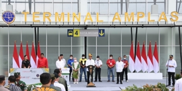 Turut hadir pada peresmian Terminal Amplas dan Tanjung Pinggir Menteri Sekretariat Negara Pratikno, Menteri BUMN Erick Thohir dan Menteri Perhubungan Budi Karya Sumadi. Hadir juga unsur Forkopimda Sumut, Walikota Medan M Bobby Afif Nasution dan Walikota Pematangsiantar Susanti Dewayani. (IS)