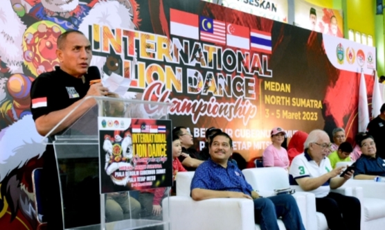 Hal itu diungkapkannya saat menghadiri Kejuaraan Barongsai Internasional, Minggu (5/3/2023) sore, dimana saat itu sudah memasuki babak final untuk puluhan peserta yang berasal dari Sumut, Aceh dan Sumatera Barat. Sementara dari luar negeri, ikut serta tim asal Malaysia, Singapura dan Thailand, dengan pelaksana event yakni Dinas Kepemudaan dan Keolahragaan (Dispora) Sumut, Federasi Olahraga Barongsai Indonesia (FOBI) untuk Provinsi Sumut, serta Perhimpunan Masyarakat Tionghoa Indonesia Sumatera Utara (MITSU).