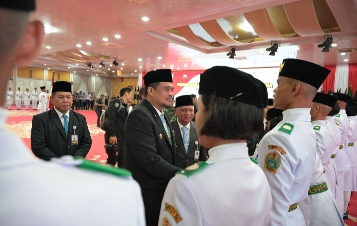 Gubernur Sumatera Utara (Gubsu) Bobby Nasution mengukuhkan 71 anggota Pasukan Pengibar Bendera Pusaka (Paskibraka) Sumut, yang akan bertugas mengibarkan bendera pusaka pada 17 Agustus 2025 di Lapangan Astaka. Pengukuhan tersebut berlangsung di Aula Tengku Rizal Nurdin, Jalan Sudirman 41 Medan, Jumat (15/8/2025).