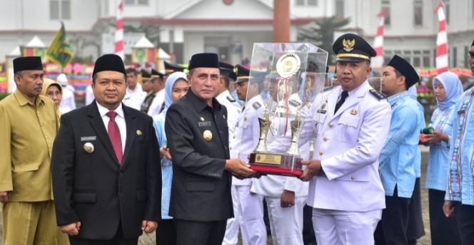 Gubernur Sumatera Utara (Gubsu) Edy Rahmayadi menyerahkan Tunggul Kecamatan Terbaik Tingkat Provinsi Kategori Kabupaten TA 2022 di Lapangan Kantor Bupati Tapanuli Selatan (Tapsel), Kecamatan Sipirok, pada sesi upacara bersama ratusan perangkat pemerintah hingga tingkat desa. Pemberian penghargaan ini diharapkan menjadi motivasi bagi yang lain, sekaligus evaluasi untuk memperbaiki kekurangan.