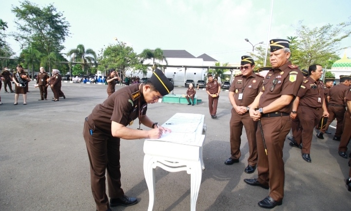 Kepala Kejaksaan Tinggi Sumatera Utara Idianto SH MH memimpin apel pagi pencanangan Pembangunan Zona Integritas Menuju Wilayah Birokrasi Bersih dan Melayani (WBBM) di halaman kantor Kejati Sumut Jalan AH Nasution, Medan, Senin (3/2/2025).
