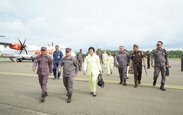 Kajati Sumatera Utara Dr Harli Siregar SH MHum didampingi Ketua Ikatan Adhyaksa Dharmakarini (IAD) Wilayah Sumatera Utara Tiurmaida Harli Siregar mengunjungi wilayah hukum Kejaksaan Negeri Gunung Sitoli guna melihat secara langsung kinerja jajaran pada satuan kerja di wilayah tersebut, Selasa (7/10/2025).