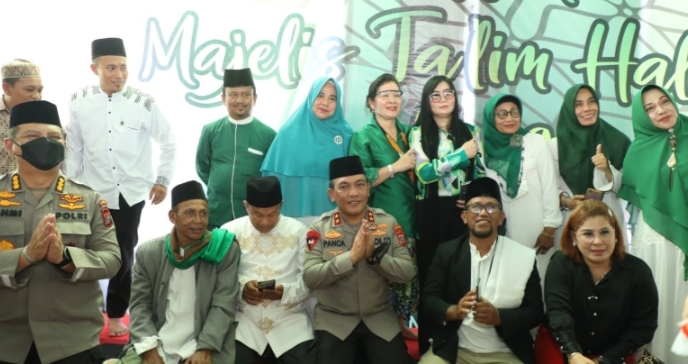 Kapolda Sumatera Utara Irjen Pol Drs Panca Putra Simanjuntak MSi hadir dalam acara Milad ke 9 Majelis Taklim, Senin (28/11/2202).
