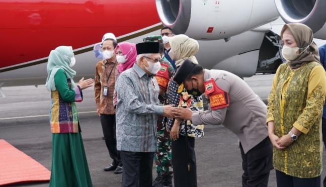 Wakil Presiden Republik Indonesia Prof Dr KH Ma’ruf Amin dan Ibu HJ Wury Ma’ruf Amin serta Rombongan Tiba di Tapanuli Tengah dengan menggunakan Pesawat Kepresidenan di Bandara Udara Dr FL Tobing Pinangsori Kecamatan Pinangsori, Kabupaten Tapanuli Tengah (Tapteng), Provinsi Sumatera Utara, dari Bandara Halim Perdanakusuma Jakarta, Selasa (14/02/23)