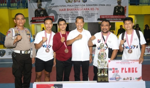 Kapolda Sumut Irjen Pol Drs RZ Panca Putra Simanjuntak MSi diwakili Wadir Intel Polda Sumut AKBP Jonson Marudut Hasibuan menutup turnamen futsal piala Kapolda Sumatera Utara 2022 dalam rangka Hari Bhayangkara ke – 76.