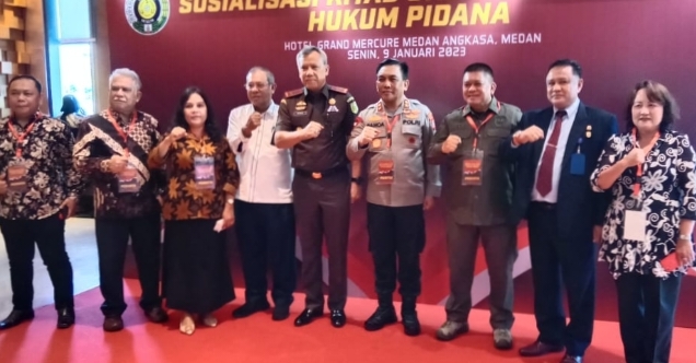 Kepala Kepolisian Daerah Sumatera Utara (Kapoldasu) Irjen Pol Drs RZ Panca Putra Simanjuntak MSi menghadiri Sosialisasi Undang Undang Nomor 1 Tahun 2023 Tentang Kitab Undang Undang Hukum Pidana Kerjasama Fakultas Hukum Universitas Sumatera Utara (FH – USU) bersama Masyarakat Hukum Pidana dan Kriminologi Indonesia (MAHUPIKI) di Hotel Grand Mercure Medan, Selasa (09/01/2023).