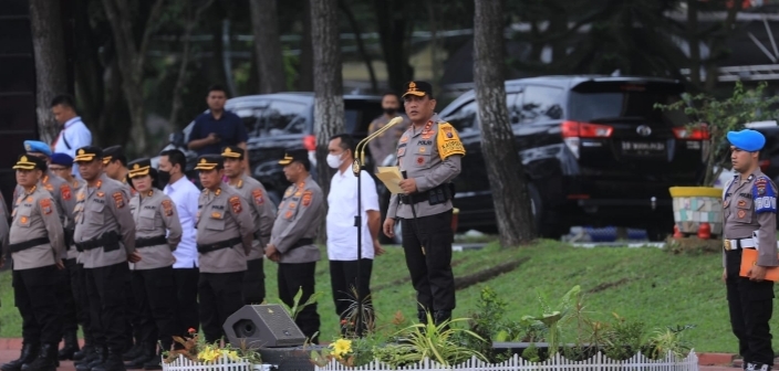 Kapolda Sumut Irjen Pol Drs RZ Panca Putra Simanjuntak MSi memimpin upacara kenaikan pangkat 1.541 personel yang terdiri dari Perwira, Bintara dan Tamtama serta PNS Polri bertempat di Lapangan Mapolda Sumut, Sabtu (31/12/2022).