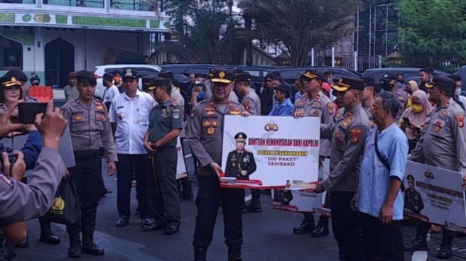 Kepolisian Republik Indonesia (Polri) terus melakukan kegiatan pembagian bantuan sosial (bansos) dari Kapolri ke masyarakat. Pembagian bansos kali ini dilakukan di wilayah Jakarta Selatan, Rabu (29/3/2023).