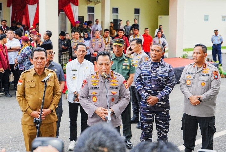 Kapolri Jenderal Listyo Sigit Prabowo memberikan pengarahan pada kegiatan ‘Silaturahmi Kamtibmas’ di Polda Kepri, Senin (14/4/2025).