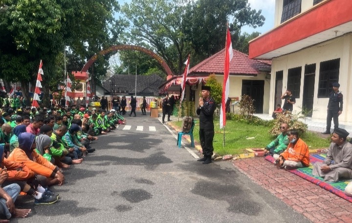 Dalam semangat persaudaraan, Satuan Brimob Polda Sumut bersama Polsek Medan Baru dan unsur TNI menggelar doa bersama dengan komunitas ojek online (ojol) Sumatera Utara, sekaligus membagikan sembako berupa 5 ton beras atau 1.000 karung kepada para pengendara ojol.