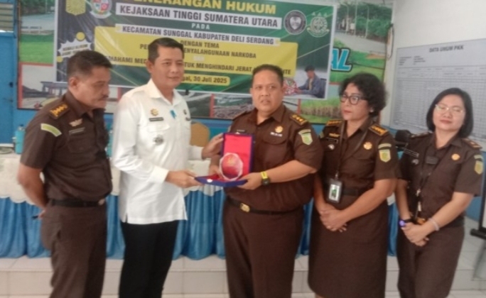 Dalam rangka pencegahan peredaran dan penyalahgunaan narkoba serta guna menghindari jerat hukum undang-undang Informasi Transaksi Elektronik (ITE) dalam menggunakan media sosial di kalangan aparatur dalam lingkup Kecamatan Sunggal Kabupaten Deli Serdang, Kejaksaan Tinggi Sumatera Utara melakukan pencegahan melalui penerangan hukum yang dilaksanakan Aula kantor Camat Sunggal Kabupaten Deli Serdang, Provinsi Sumatera Utara, Rabu (30/07/2025).