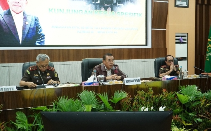 Sebelumnya, kunjungan kerja (Kunker) Anggota Komisi III disambut Kepala Kejaksaan Tinggi Sumatera Utara Idianto, didampingi Rudy Irmawan, para Asisten, para Kajari, Koordinator dan Kabab TU serta para Kasi Pidsus dan Kasi Pidum di aula Sasana Cipta Kerta Lantai 3 Kantor Kejati Sumut. (HS)
