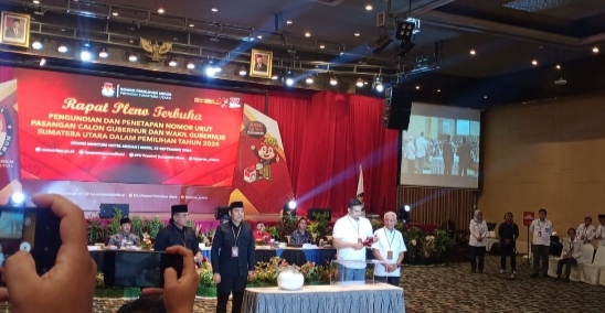 Hasil rapat pleno terbuka pengundian dan penetapan nomor urut pasangan calon Gubernur dan Wakil Gubernur Sumatera Utara dalam pemilihan tahun 2024 tersebut Paslon Bobby Nasution-Surya mendapatkan nomor urut 1 (satu), sementara Paslon Edy Rahmayadi-Hasan Basri Sagala mendapatkan nomor urut 2 (dua).