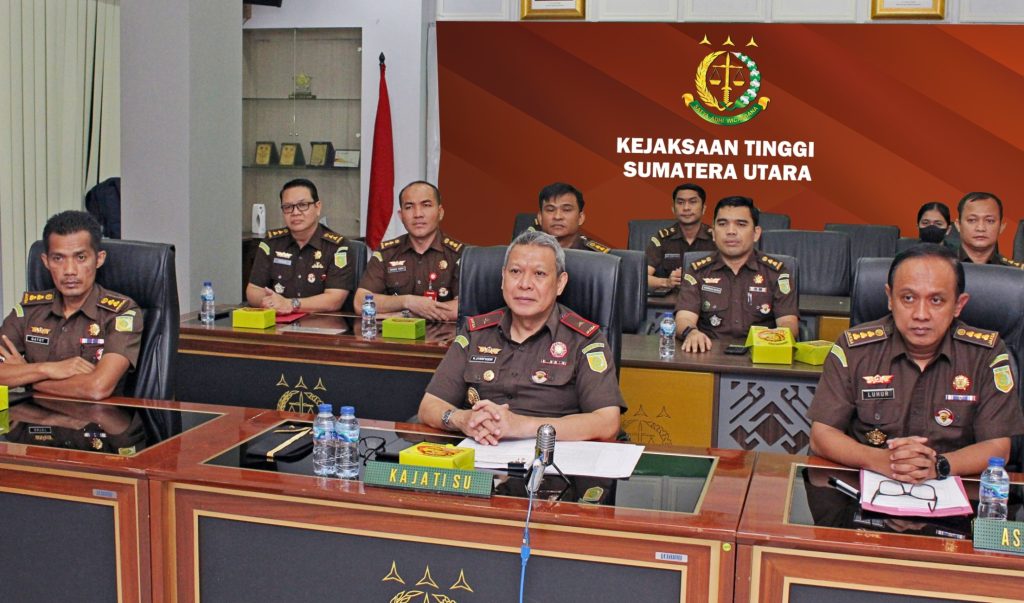 Ekspose perkara disampaikan kepada Jaksa Agung Muda Pidana Umum (JAM Pidum) Dr Fadil Zumhana yang diwakili Direktur TP Oharda pada JAM Pidum Kejagung RI Nanang Ibrahim Soleh SH MH, Direktur Tindak Pidana Terhadap Keamanan Negara dan Ketertiban Umum dan Tindak Pidana Umum Lainnya pada JAM Pidum Agus Sahat Sampe Tua SH MH dan didampungi para Kasubdit pada JAM Pidum Kejagung RI, Selasa (6/2/2024) dari ruang Vicon Lantai 2 Kantor Kejati Sumut, Jalan AH Nasution Medan.