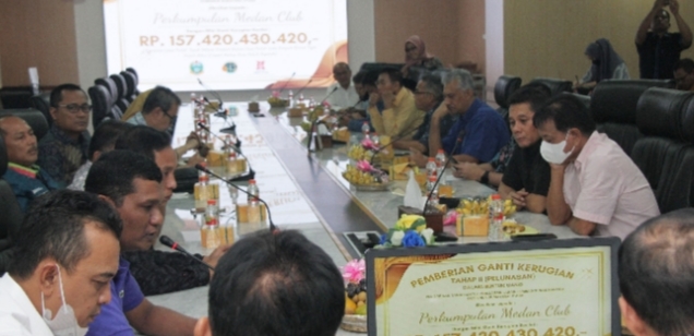 Hal tersebut ditandai dengan penandatanganan berita acara pemberian ganti kerugian dalam bentuk uang tahap II (pelunasan) dengan Nomor 38 / BA – 12.71.AT.01.500/1/2023, oleh Kepala Biro Umum Setdaprov Sumut Dedi Jaminsyah Putra, Kepala Kantor Pertanahan Kota Medan Yuliadi, selaku Ketua Pelaksana Pengadaan Tanah dan Ketua Pengurus Perkumpulan Medan Club Eswin S Soekardja, di Ruang Rapat I Lantai 2 Kantor Gubenur Sumut, Jalan Diponegoro Nomor 30 Medan, Jumat (13/1/2023).