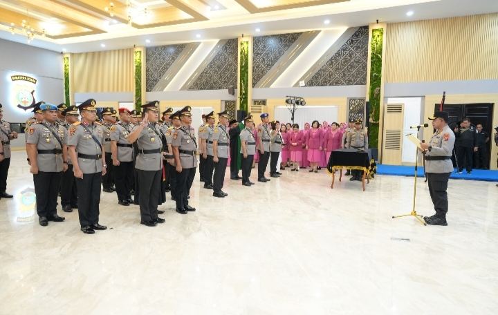 Kepala Kepolisian Daerah Sumatera Utara Irjen Pol Whisnu Hermawan Februanto SIK MH memimpin langsung rangkaian serah terima jabatan (sertijab) dan pengukuhan Pejabat Utama (PJU) serta Kapolres jajaran Polda Sumut yang digelar di Aula Tribrata Lantai I Mapolda Sumut, Kamis (8/1/2026).