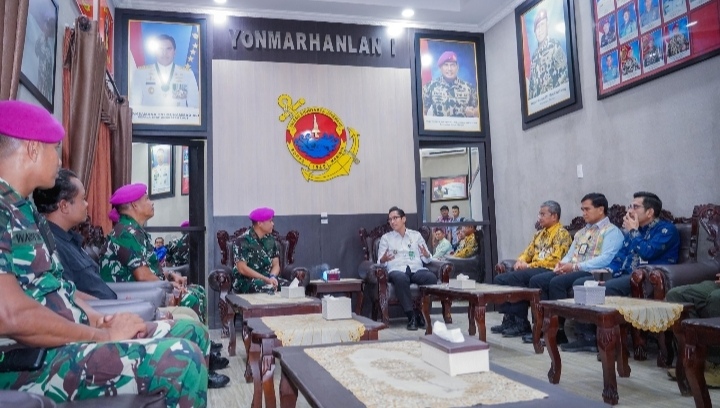 Suasana penuh keakraban dan kekeluargaan mewarnai pertemuan Wali Kota Medan Rico Tri Putra Bayu Waas dengan Komandan Batalyon Marinir Pertahanan Pangkalan (Yonmarhanlan) I Belawan Mayor Marinir Remon Dabukke MTr Opsla di Markas Komando Yonmarhanlan I, Belawan, Jalan Serma Hanafiah, Belawan, Jumat (7/3/2025).