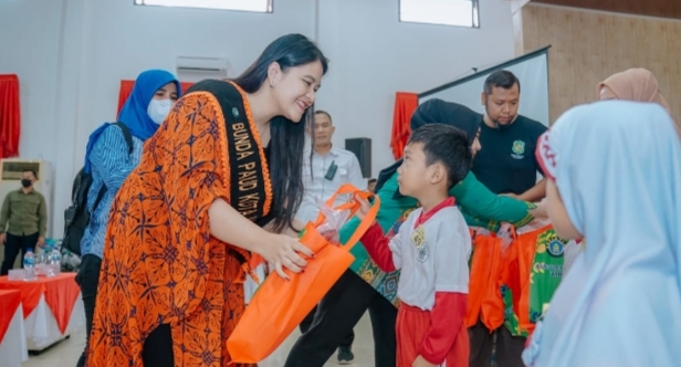 Bunda Pendidikan Anak Usia Dini (PAUD) Kota Medan Ny Kahiyang Ayu M Bobby Afif Nasution memberikan bantuan peralatan sekolah kepada 200 orang anak PAUD di Gedung TP PKK Kota Medan Jalan Rotan Medan, Selasa (20/12/2022). Diharapkan, bantuan yang diberikan dapat membantu dalam membentuk anak berkualitas.