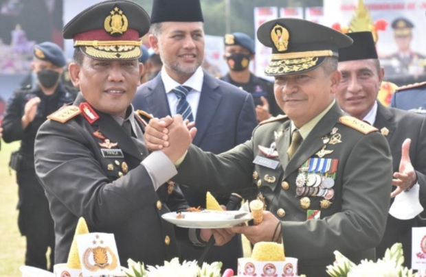 Di Poldasu, usai Upacara dengan Presiden RI, Pangdam I/BB Bersama Kapoldasu memotong Tumpeng dengan disaksikan Gubernur Sumut dan Wagubsu serta para Forkopimda Sumut dan pejabat yang hadir.