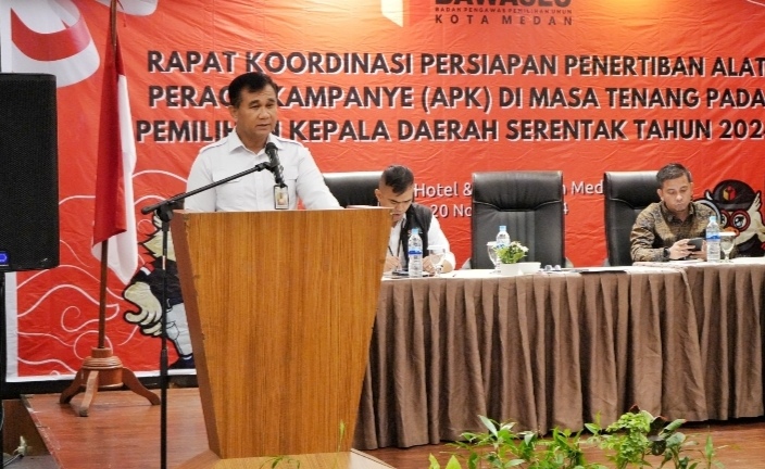 Harapan tersebut disampaikan Plt Wali Kota Medan H. Aulia Rachman diwakili Asisten Pemerintahan dan kesejahteraan Rakyat Setda Kota Medan M. Sofyan saat menghadiri Rapat Koordinasi Persiapan Penertiban Alat Peraga Kampanye (APK) Dimasa Tenang Pada Pemilihan Kepala Daerah Serentak Tahun 2024 di Hotel Le Polonia, Rabu (20/11/2024).