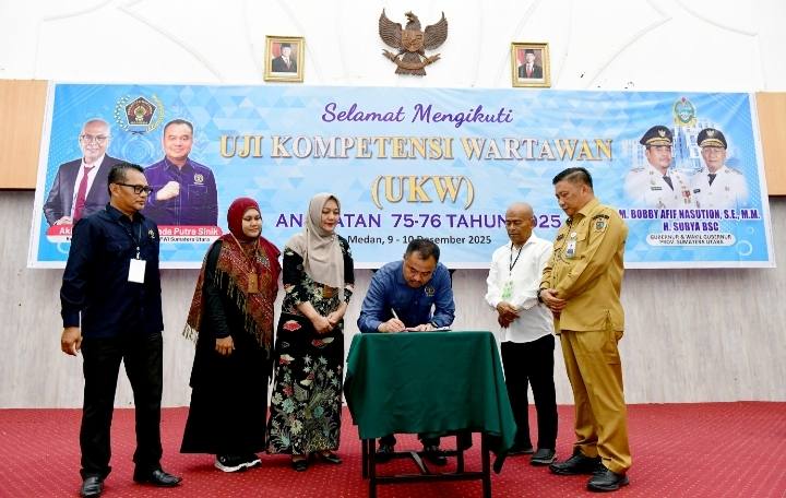 Hal tersebut disampaikan Kepala Dinas Komunikasi dan Informatika (Kominfo) Sumut, Erwin Hotmansah Harahap, saat mewakili Gubernur Sumut Bobby Nasution pada Uji Kompetensi Wartawan (UKW) yang diselenggarakan Persatuan Wartawan Indonesia (PWI) di Hotel Madani, Medan, Selasa (9/12/2025).